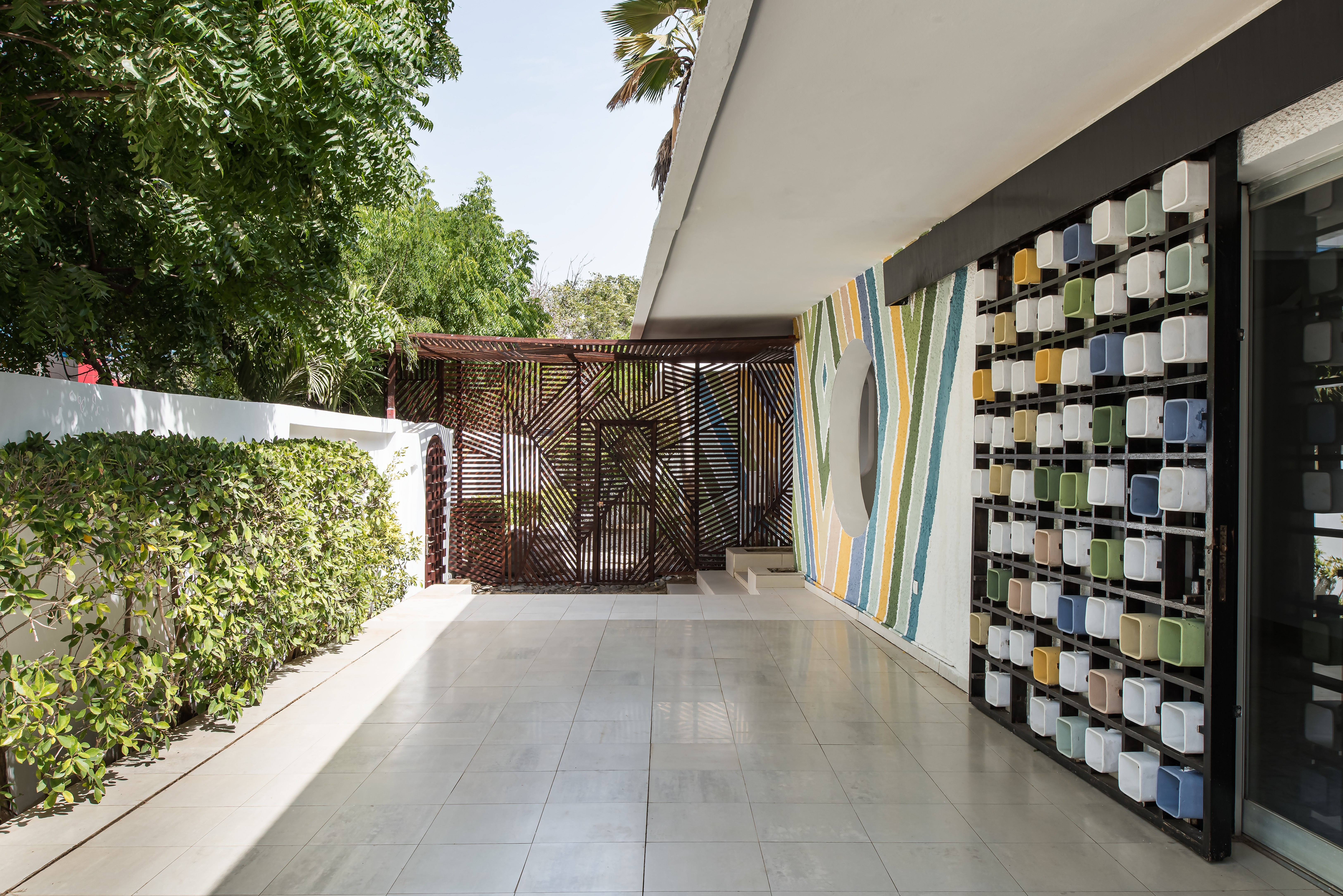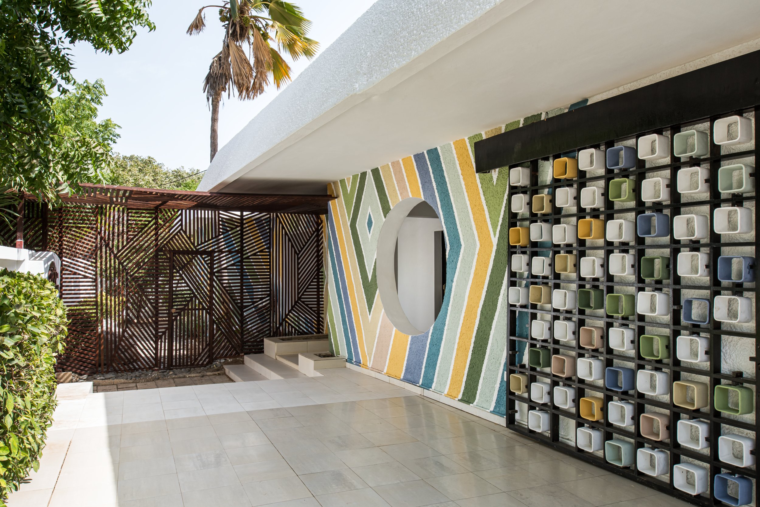 This metallic pergola was specifically designed to reflect tribal markings, another yet reference to the Senegalese culture present in this project, making not a practical and decorative element.