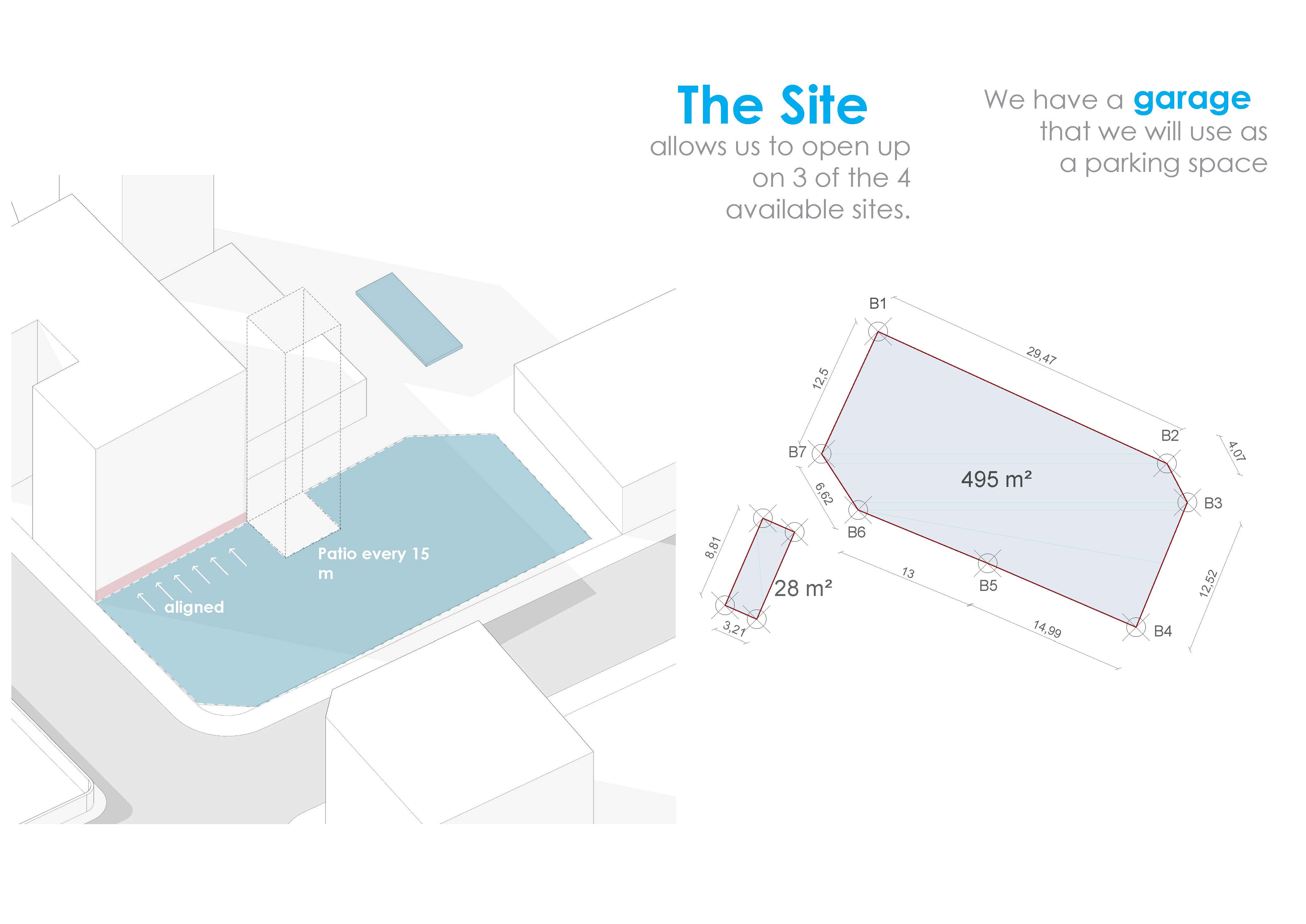 The volume of Residence Vittoria is generated directly from its 495 m² footprint. The site’s unique geometry allows the building to open outward on three of its four sides, maximizing natural light and cross-ventilation for every apartment. To preserve the ground floor for high-end amenities, vehicular logistics are externalized to an adjacent 28 m² parcel dedicated exclusively to secure parking, ensuring a clean and pedestrian-focused street-level facade