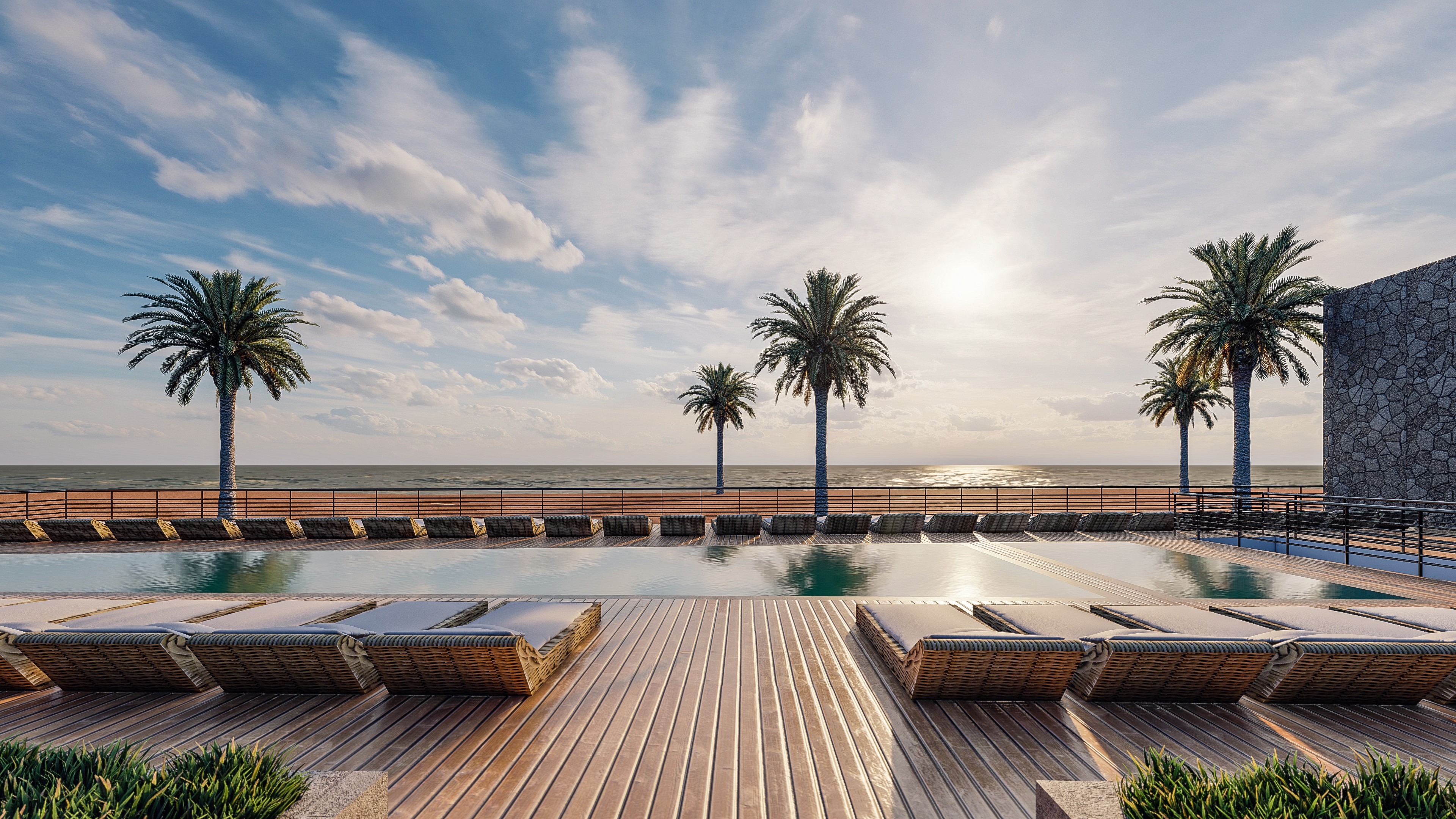 Situated along the pristine beachfront of Senegal’s Petite Côte in Somone, Somone Bordure de Mer is a luxury residential resort designed to merge monumental architecture with coastal serenity. The masterplan responds directly to the site’s topography. Rather than a flat, homogenous layout, the apartments are organized on cascading, gradual levels that step upward as they move inland. This terraced strategy ensures that even the units situated deepest within the plot enjoy sweeping, unobstructed views of the Atlantic Ocean, while creating a dynamic sequence of layered private gardens and pathways.