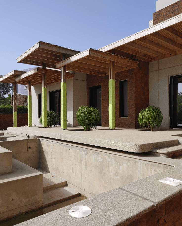The Villa Somone is a 360m² house tailored to blur the separation between interior and exterior gathering spaces to make the most out of the scenery offered by the nearby Somone Lagoon. The project creates its own « terrain », creating an architectural language where spaces interlock and generate platforms that offer unpredictable vantage points. Given the context, special care has been taken to ensure bioclimatic comfort for the inhabitants, from orientation to insulated layered walls.