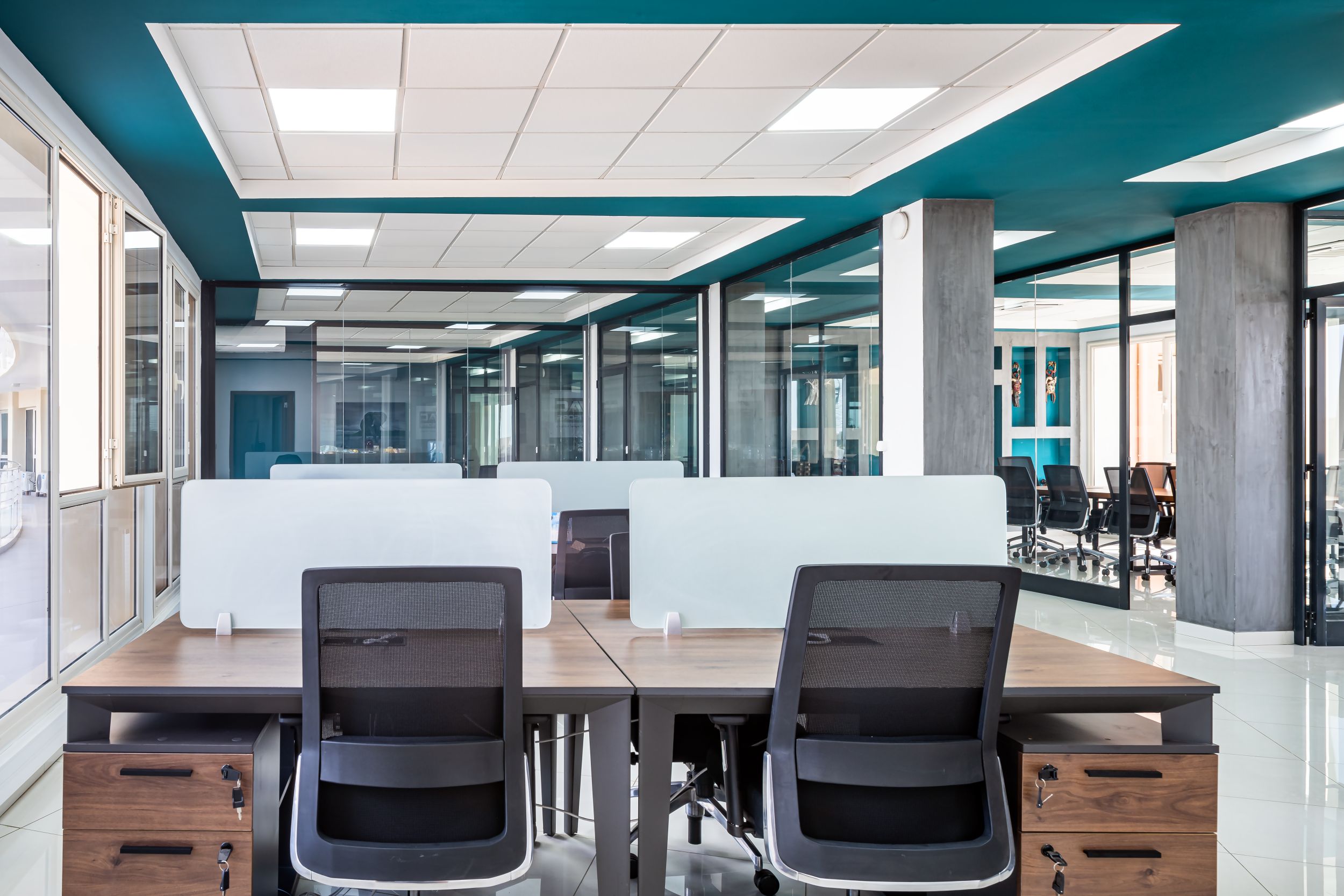MOST was commissioned to work on a predefined volume where the flooring was already in place and a structural grid reinforced the building's distinctive form. The project required the planning and interior design of an office space.